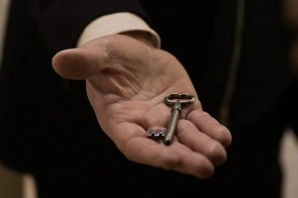 Photo: Gianni Crea, key keeper of the Vatican Museums, shows the key that opens the door to the Sistine Chapel, Vatican, 13 February 2024. (Photo by TIZIANA FABI/AFP via Getty Images.)