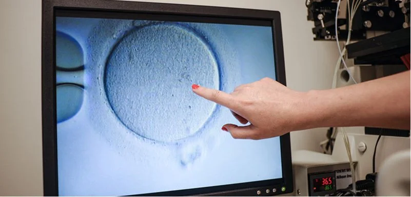 Photo: An embryologist shows an Ovocyte on a computer screen after it was inseminated at the Virginia Center for Reproductive Medicine in Reston, Virginia, USA, 12 June 2019. (Photo by IVAN COURONNE/AFP via Getty Images.)