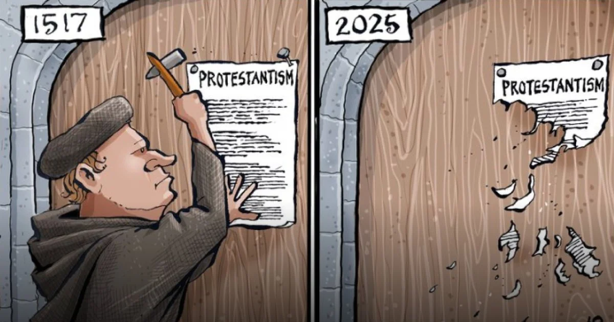 Outside the established Churches, the Protestant slogans are still recited and invoked, especially in the Pentecostalist sphere and in the mushroom churches that spring up like small businesses in the crumbling infrastructure of former cinemas, abandoned bingo halls, deserted shopping malls, and emptying industrial estates. But the "faith alone" preached there is a shadow of Luther's. The rhetoric of today's evangelical preaching is the rhetoric of choice: "Choose Jesus". It's the language of the market and the consumer, and often enough packaged in an account of faith and providence that is more like a cargo cult than anything Christian.